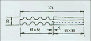 (長 X 寬 X 高 單位:mm)基本塊為173 X 173 X 20 = 1塊。|85 X 42.5 、85 X 85、131.5 X 85、174 X 85、220.5 X 85、263 X 85、174 X 174、263 X 174等,可以基本塊為單位。根據需要任意拚裝,每一基本塊使用的橡膠硬度又分為40°、60°、80°、三種規格,以適應不同垂向設計負載。